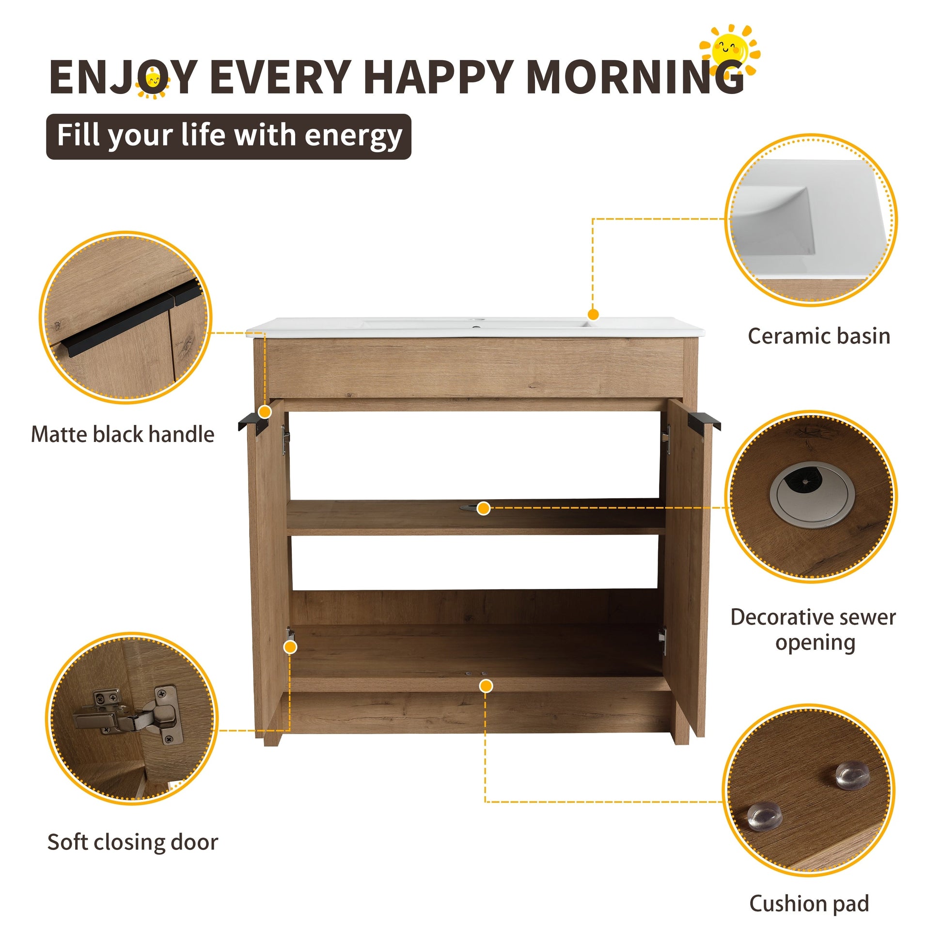 Beingnext Meuble-lavabo 24/30/36 avec porte à fermeture douce...