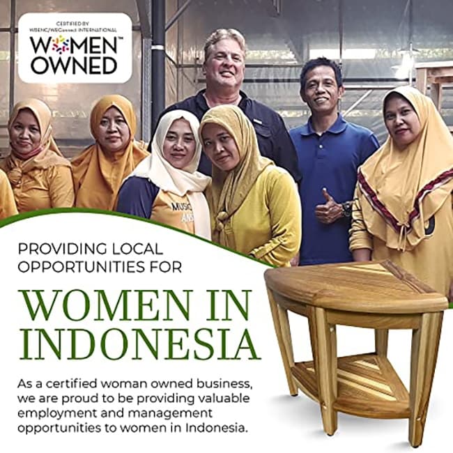 - Production durable et éthique : Fabriqué par une entreprise certifiée détenue par des femmes, ce tabouret de douche en teck reflète l'engagement de la marque pour la qualité et l'autonomisation. Chaque pièce est issue de sources responsables et conçue avec soin. Bancs de douche en teck.