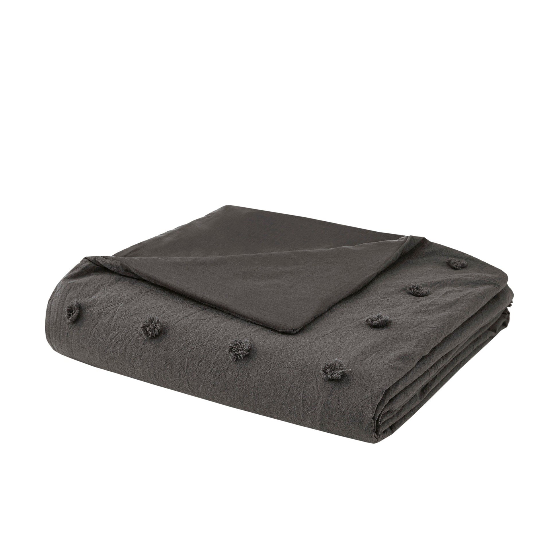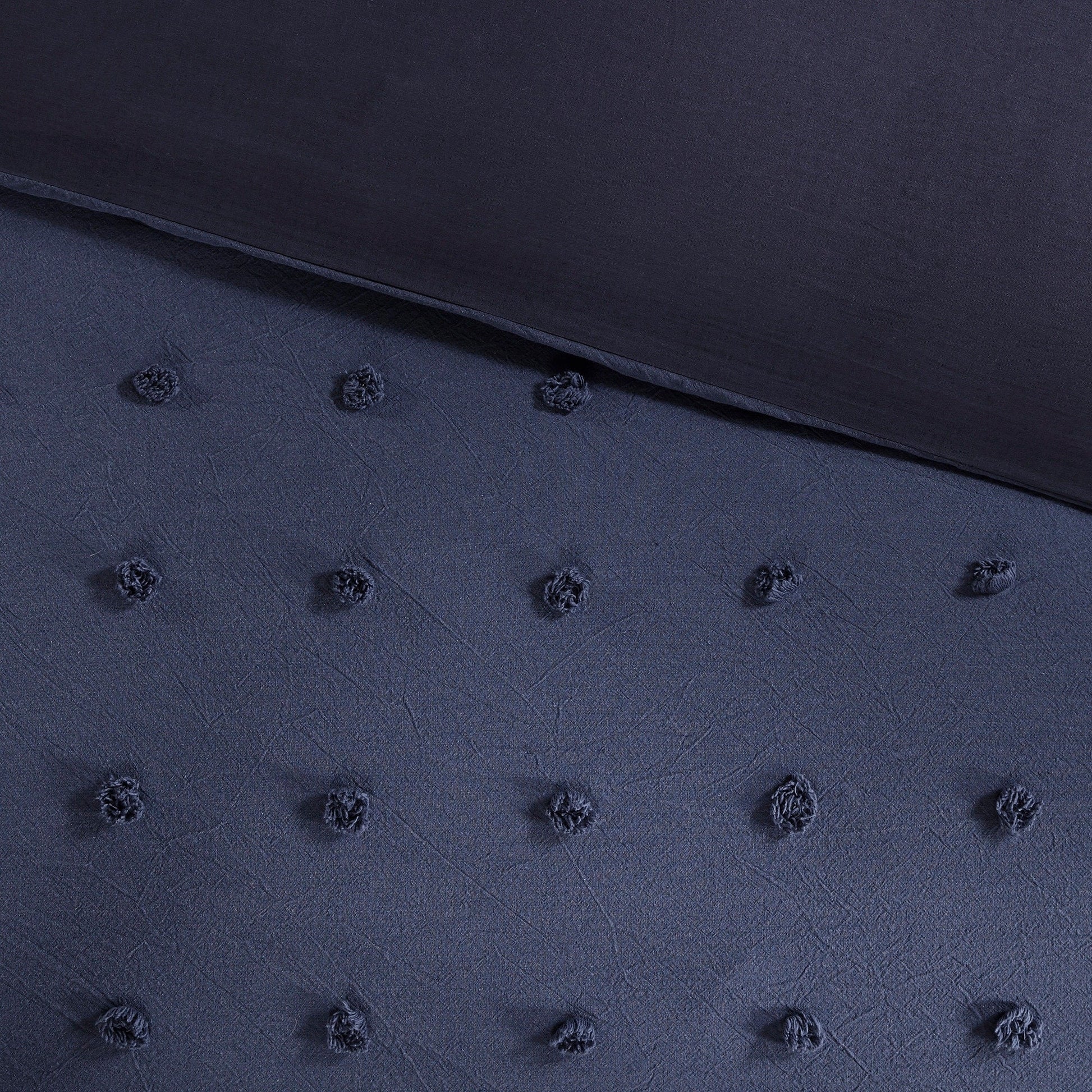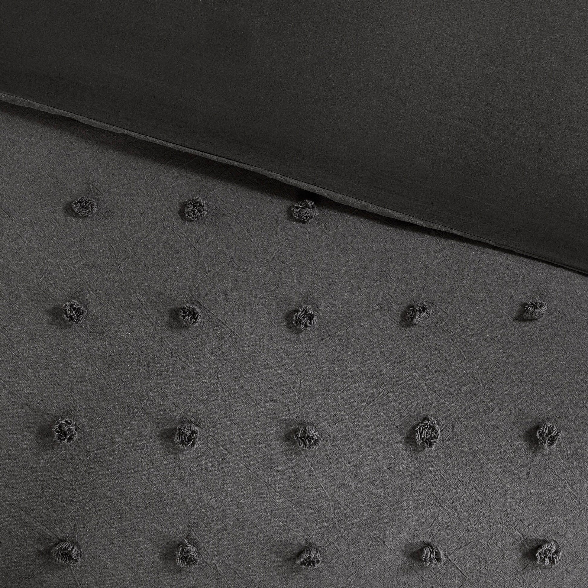 The Intelligent Design Maize Cotton Jacquard Duvet Cover Set features small tufted chenille dots that create a fresh shabby chic look. This duvet cover set brings a soft and charming update to your bedroom.