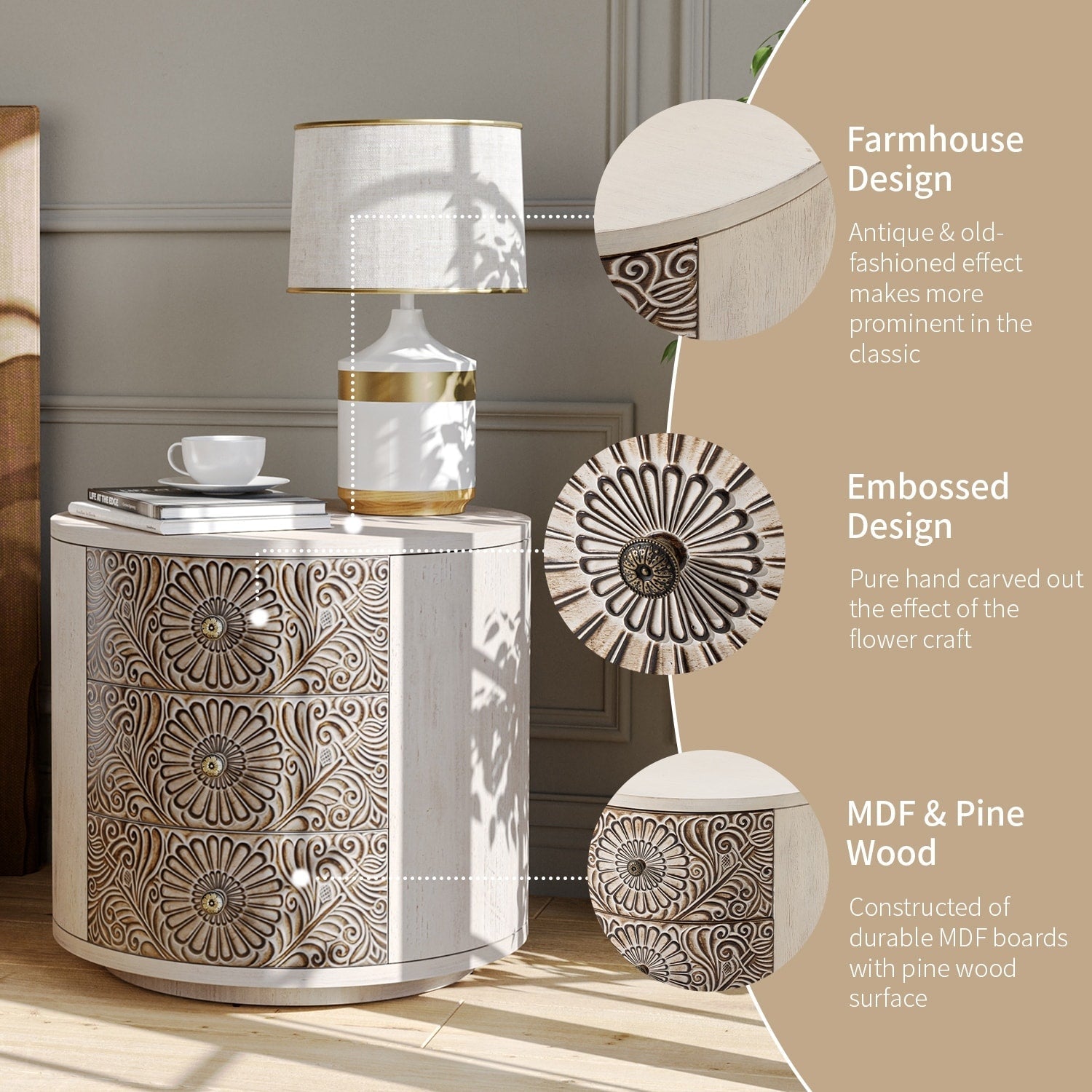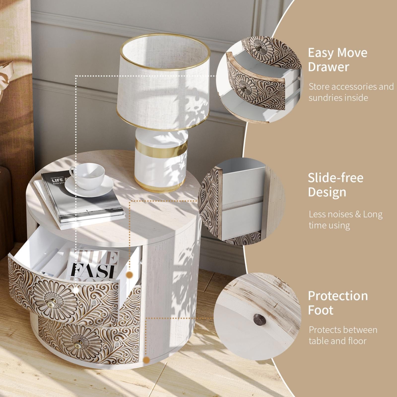 COSIEST Vintage Brown Pattern Solid Wood Nightstand with...