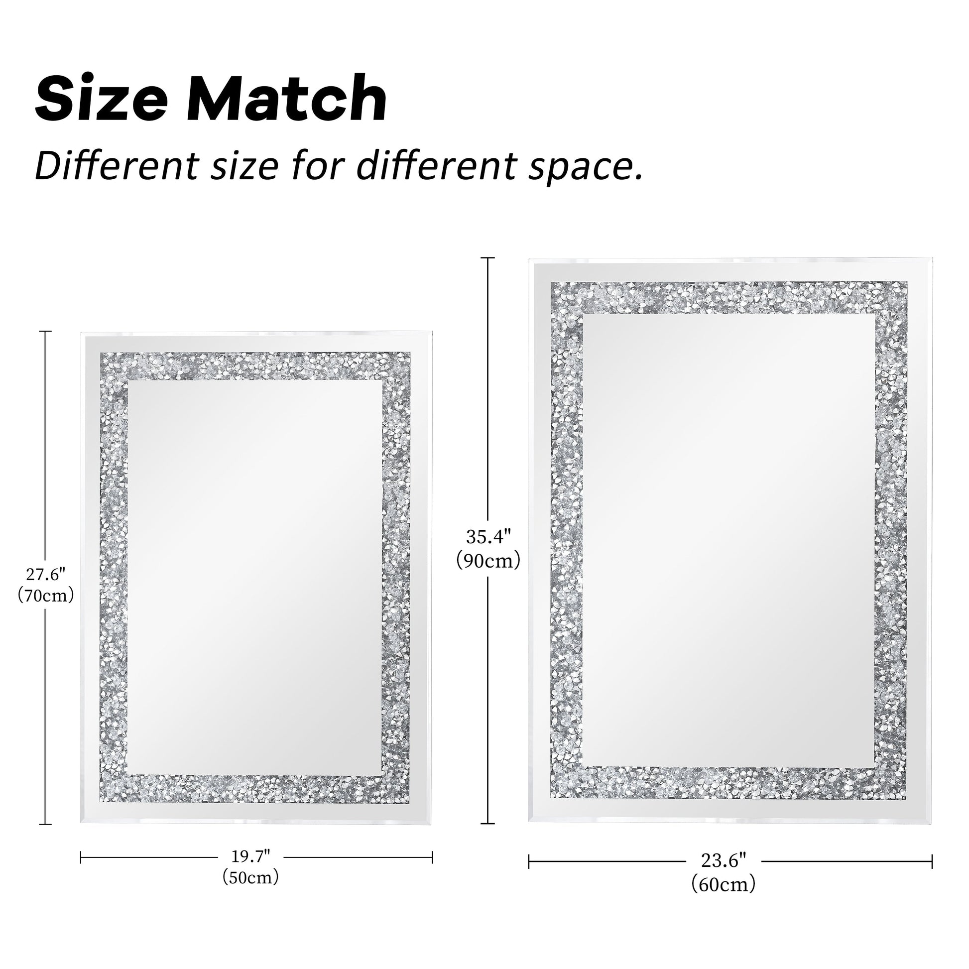 KOHROS Silver Rectangle Crystal Decorative Wall Mirror