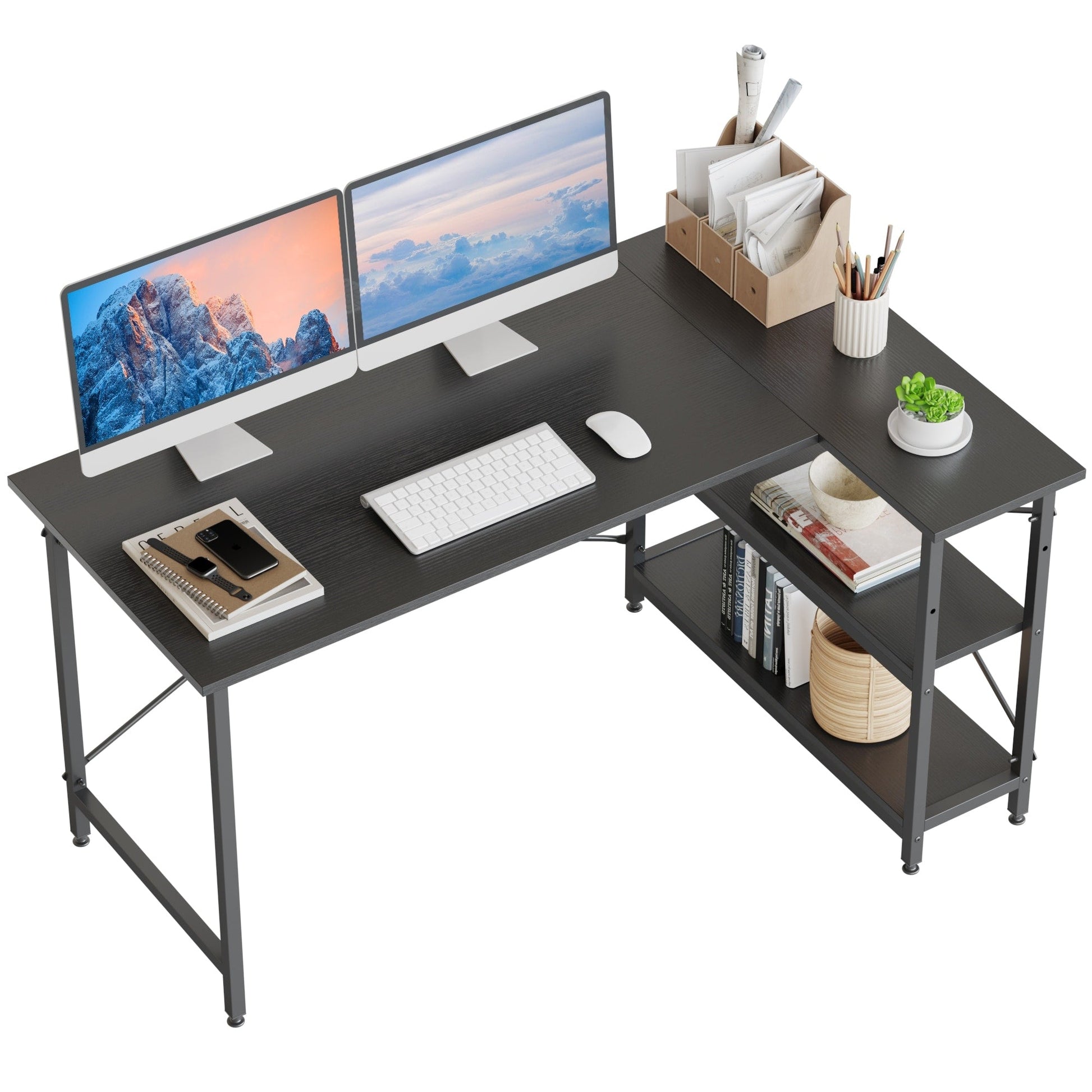 Petit bureau en L avec étagères de rangement...