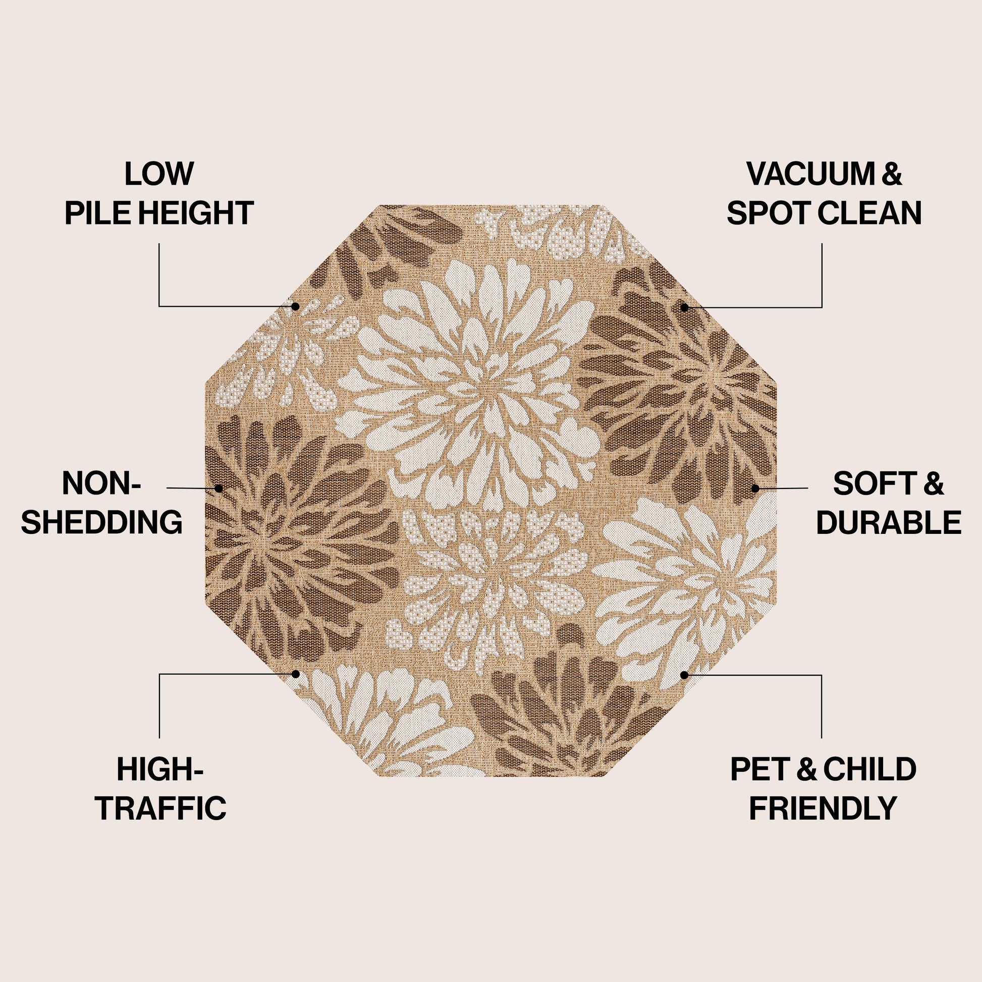 - Durable and easy-care - just sweep or hose down with mild soap and water