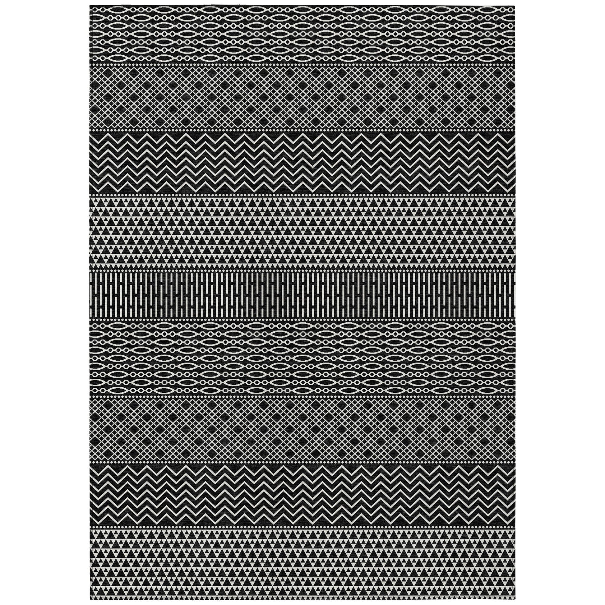 Machine Washable Indoor/ Outdoor Modern Stripes Chantille Rug
