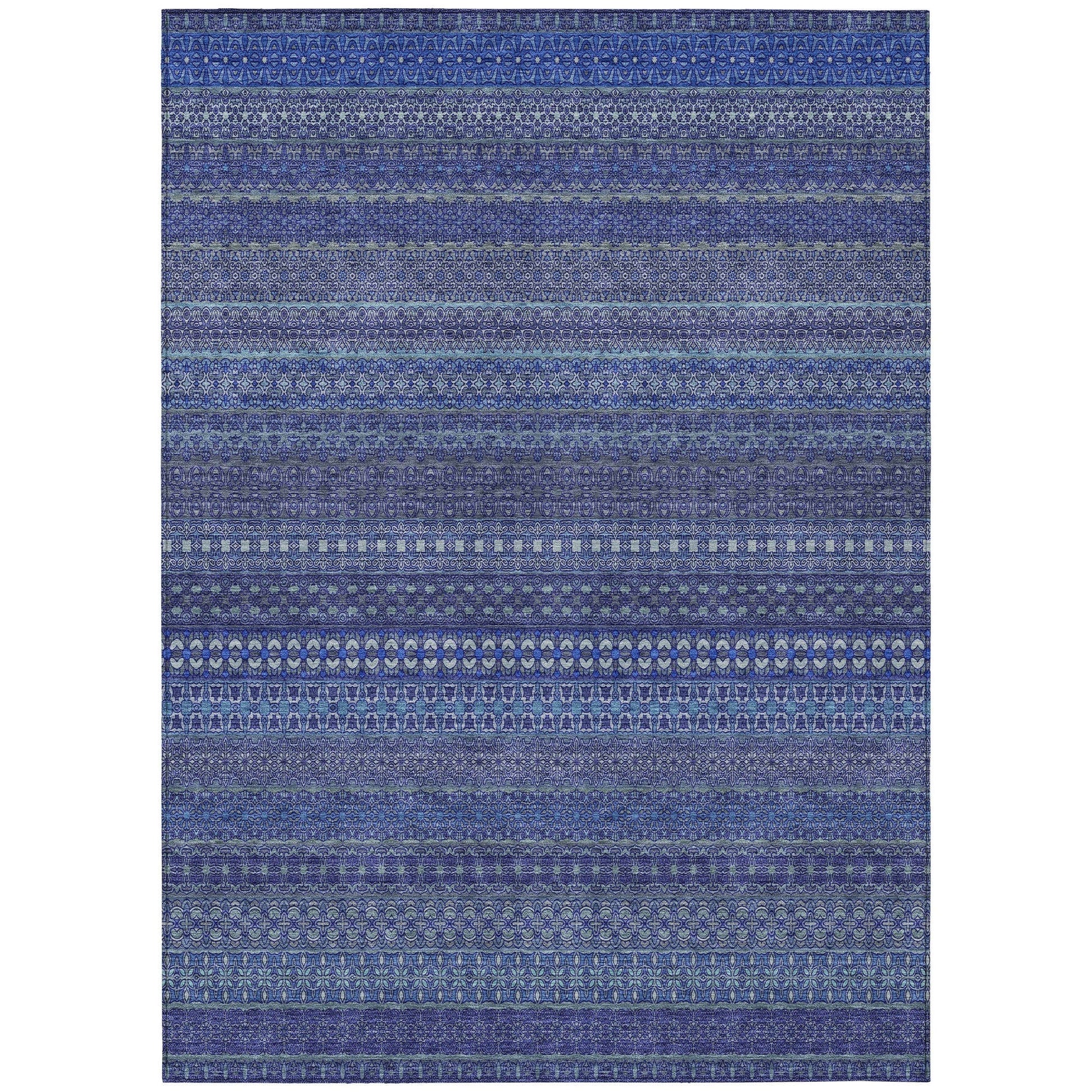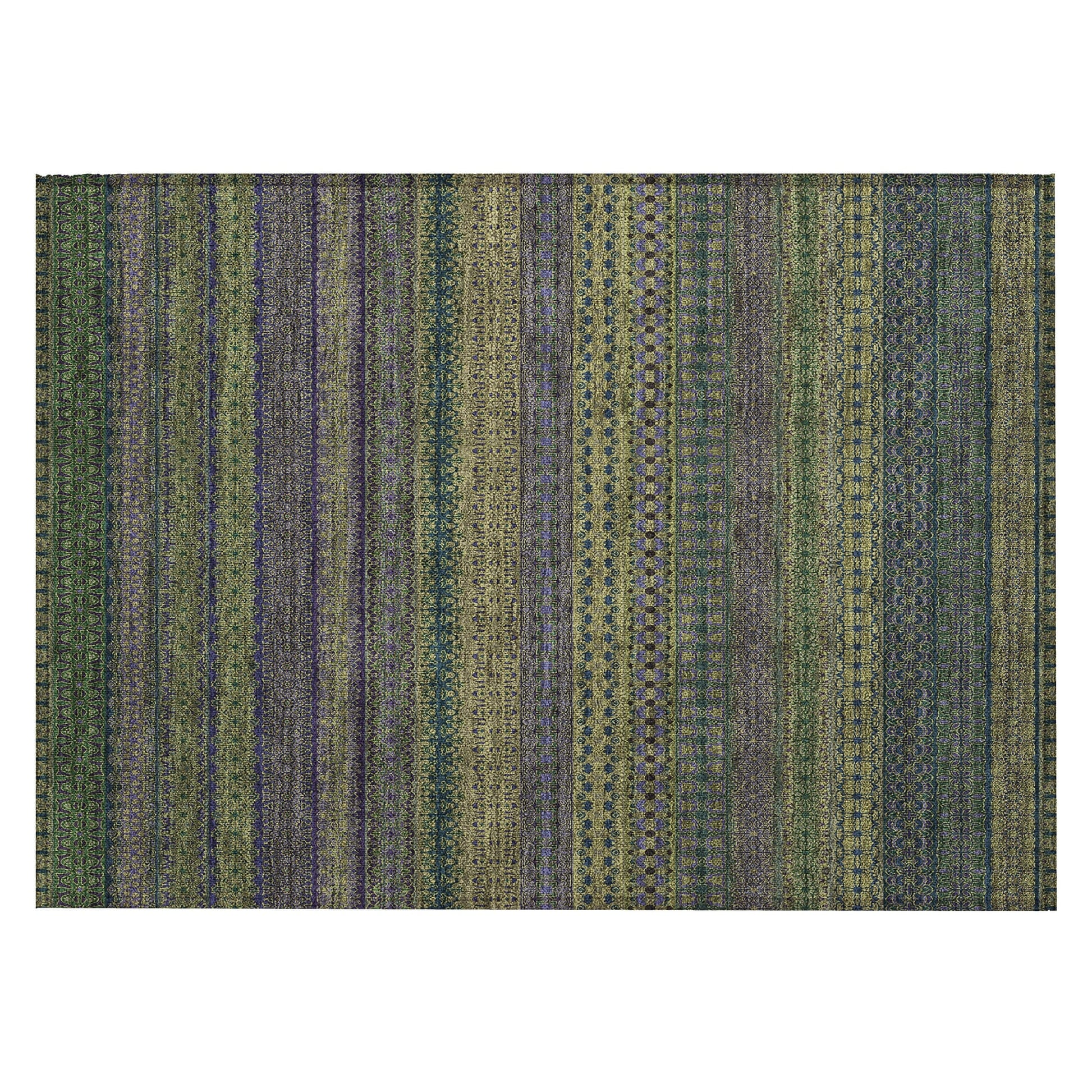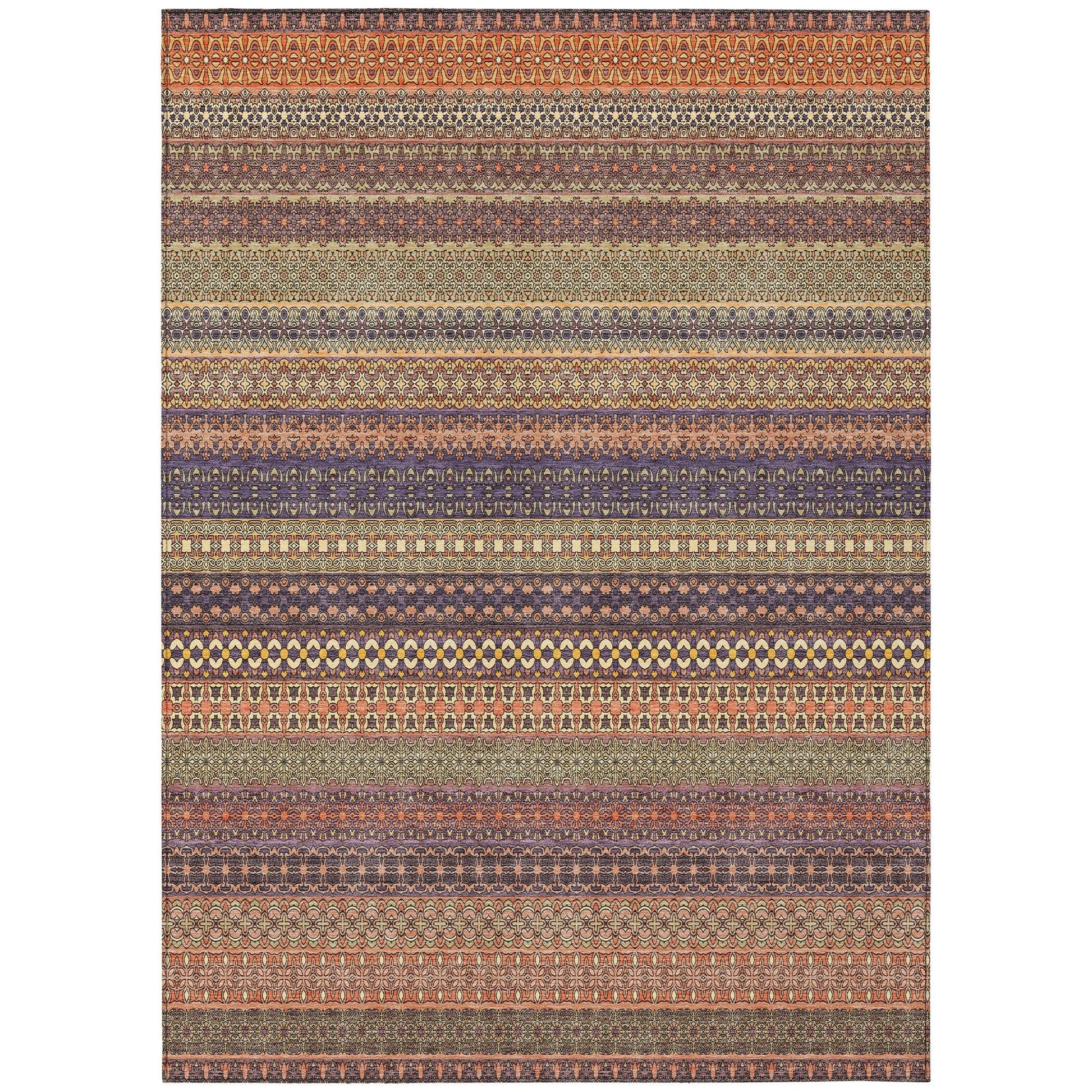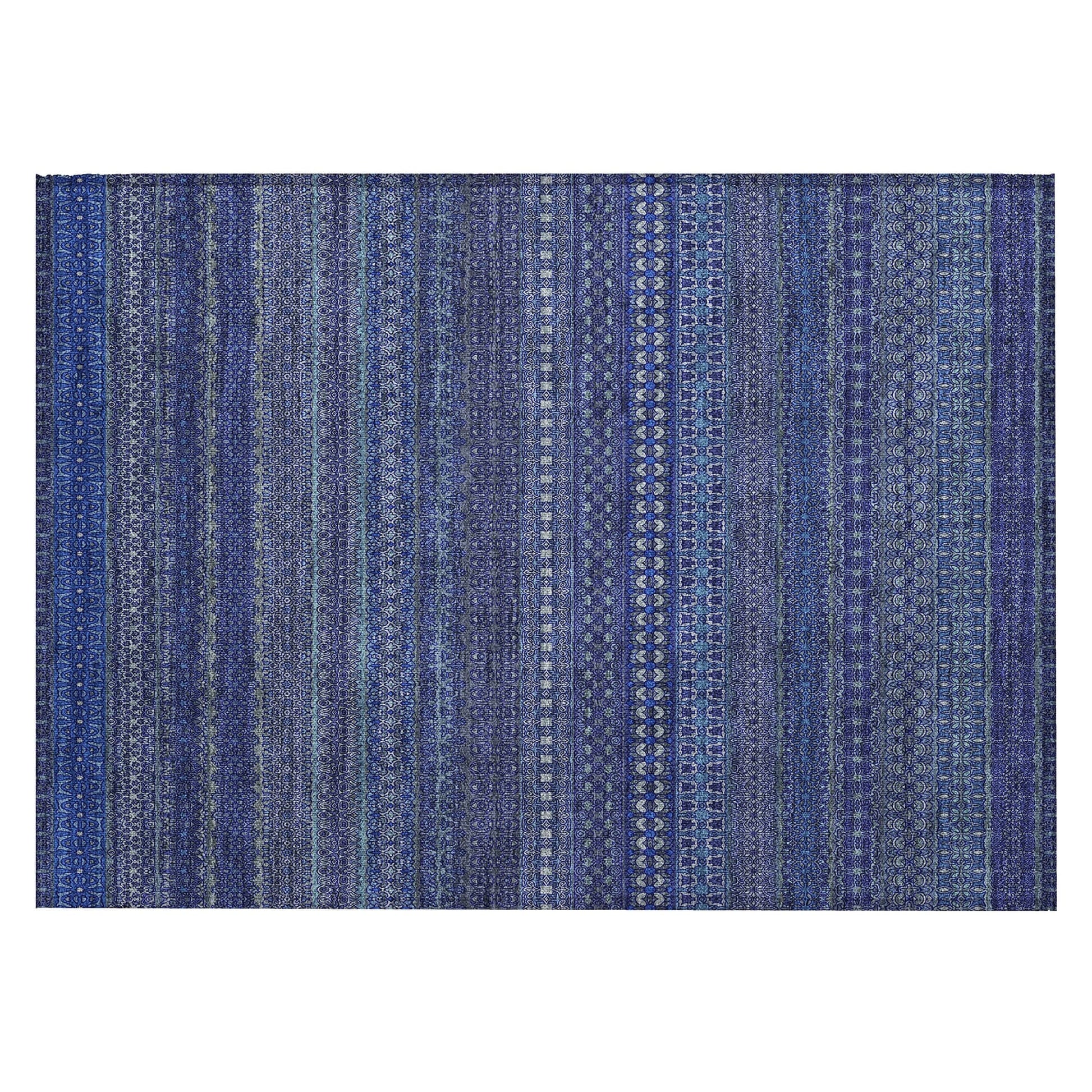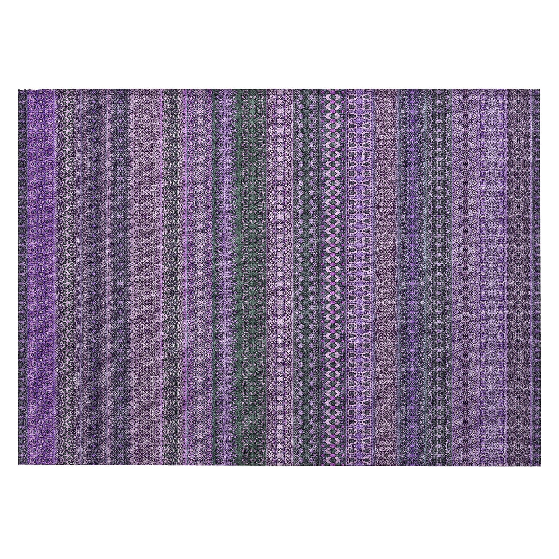 Elevate your decor with our area rug, showcasing an eclectic mix of shapes and motifs that add a whimsical touch to your floor. This transitional striped rug is a perfect blend of style and fun. With UV stabilization, it can be confidently placed indoors or outdoors. The ultra-thin construction includes an incorporated non-skid backing, providing stability and eliminating the need for a separate rug pad. The ultra thin profile allows for fast drying after a rainfall or outdoor cleaning. It's machine-washable and designed to be family and pet-friendly, making it a practical choice for any home. Larger rug sizes may not fit into a residential washing machine. They may be washed in a commercial size washing machine or hosed-off outside with mild soap and water. Air-dry, do not machine dry. All rugs exposed to long periods of intense and direct sunlight can experience loss of color over time. Our rugs perform best in covered outdoor areas and uncovered areas with lower hours of direct sunlight.