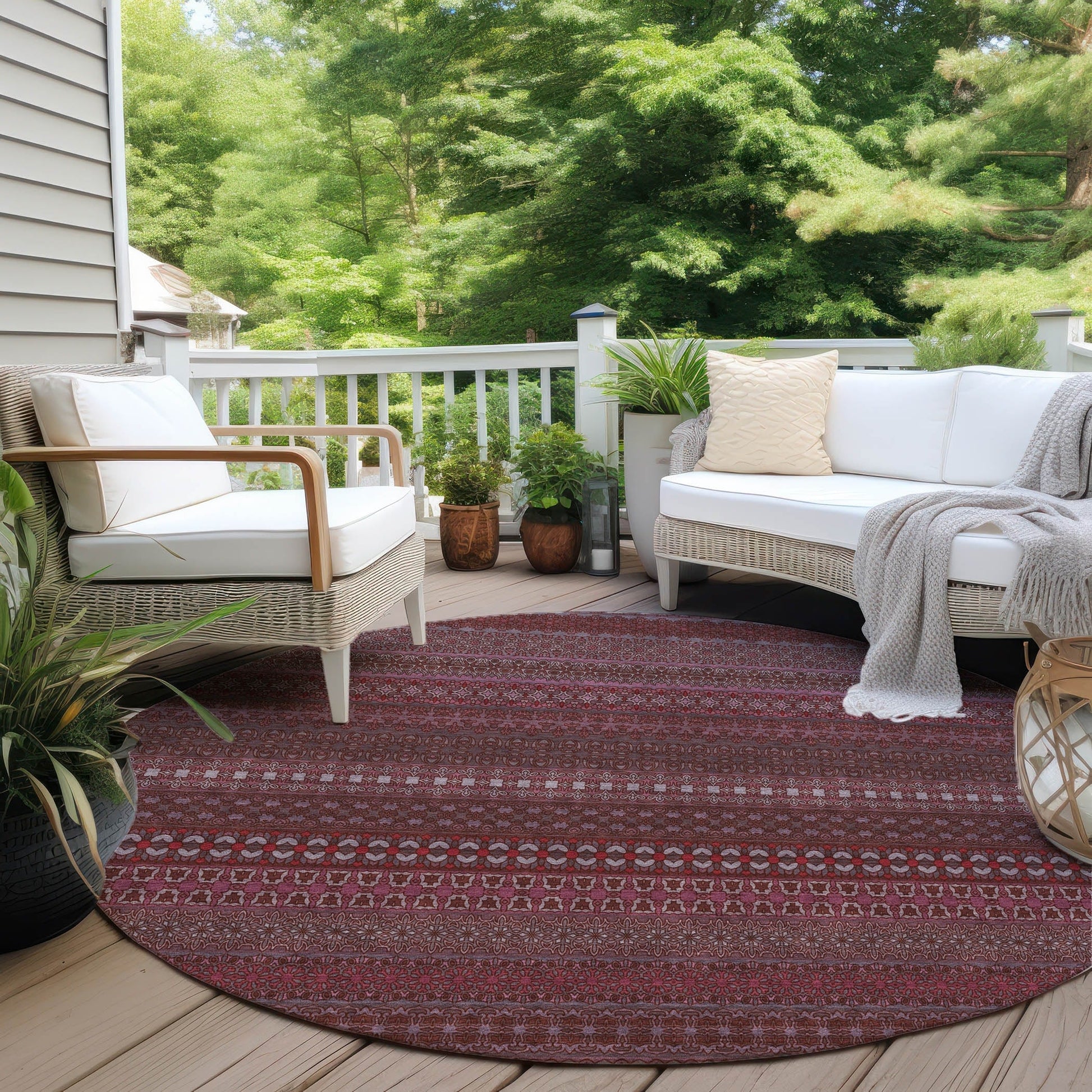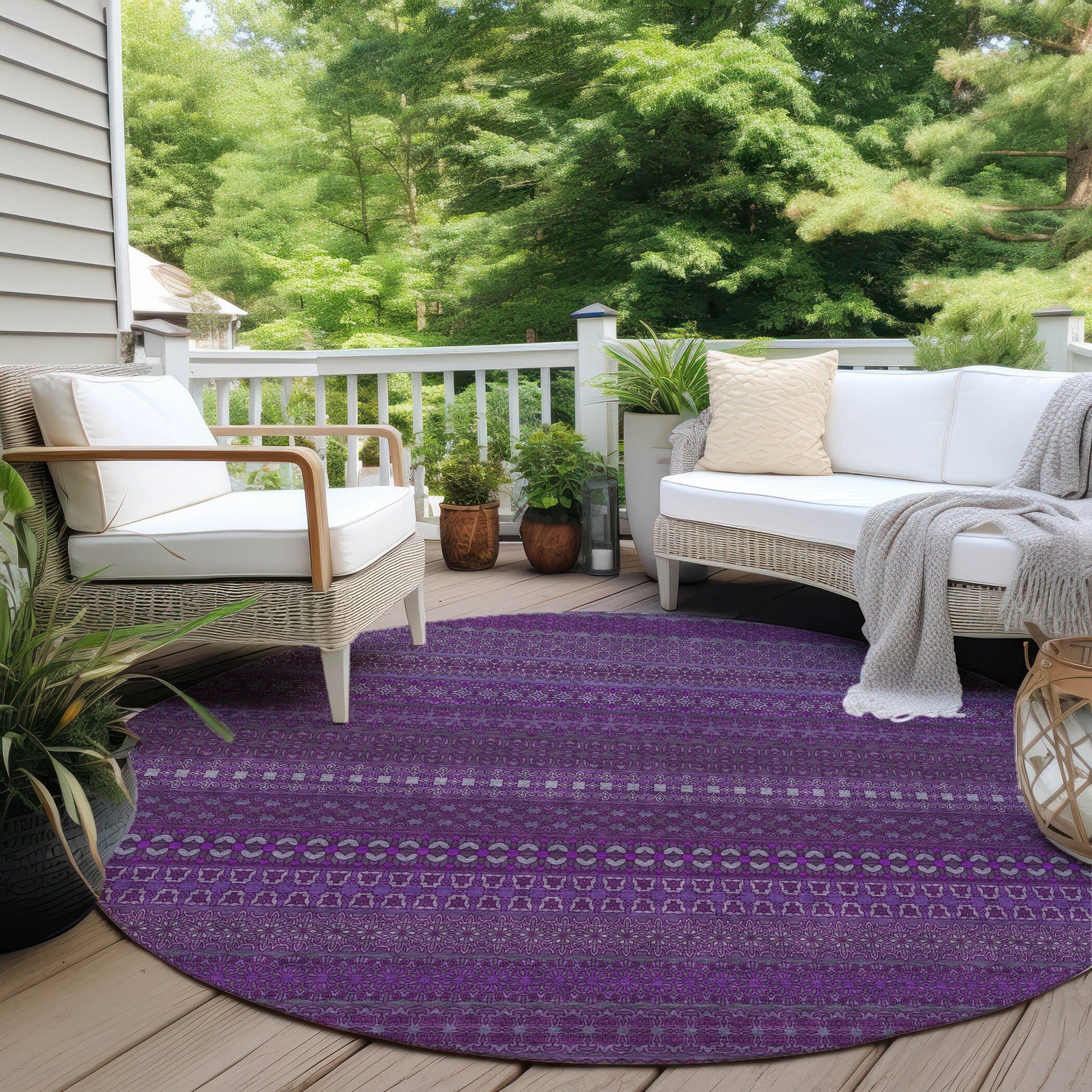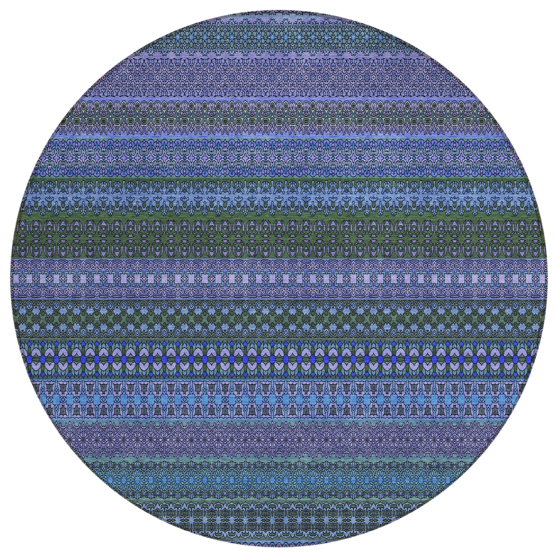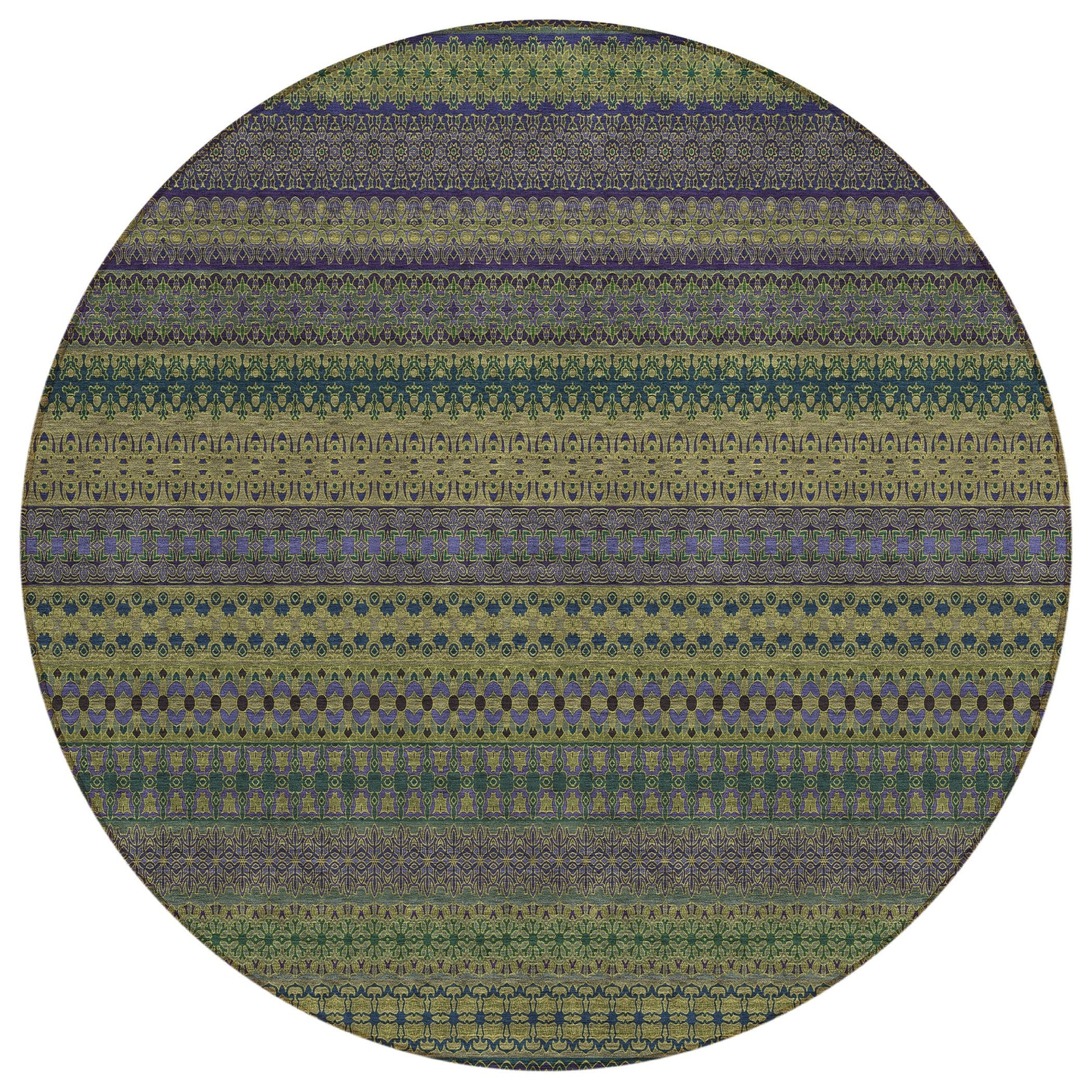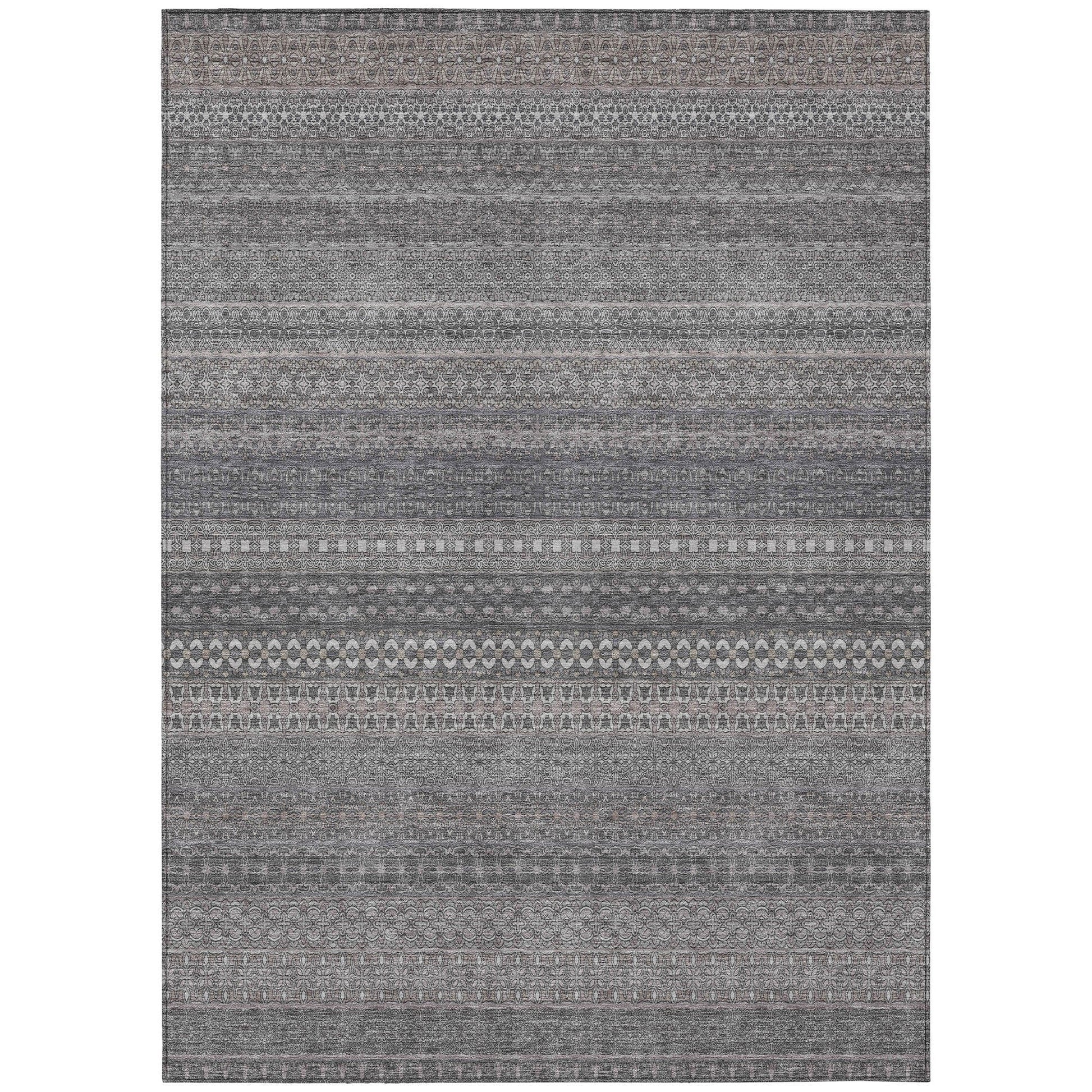 Elevate your decor with our area rug, showcasing an eclectic mix of shapes and motifs that add a whimsical touch to your floor. This transitional striped rug is a perfect blend of style and fun. With UV stabilization, it can be confidently placed indoors or outdoors. The ultra-thin construction includes an incorporated non-skid backing, providing stability and eliminating the need for a separate rug pad. The ultra thin profile allows for fast drying after a rainfall or outdoor cleaning. It's machine-washable and designed to be family and pet-friendly, making it a practical choice for any home. Larger rug sizes may not fit into a residential washing machine. They may be washed in a commercial size washing machine or hosed-off outside with mild soap and water. Air-dry, do not machine dry. All rugs exposed to long periods of intense and direct sunlight can experience loss of color over time. Our rugs perform best in covered outdoor areas and uncovered areas with lower hours of direct sunlight.