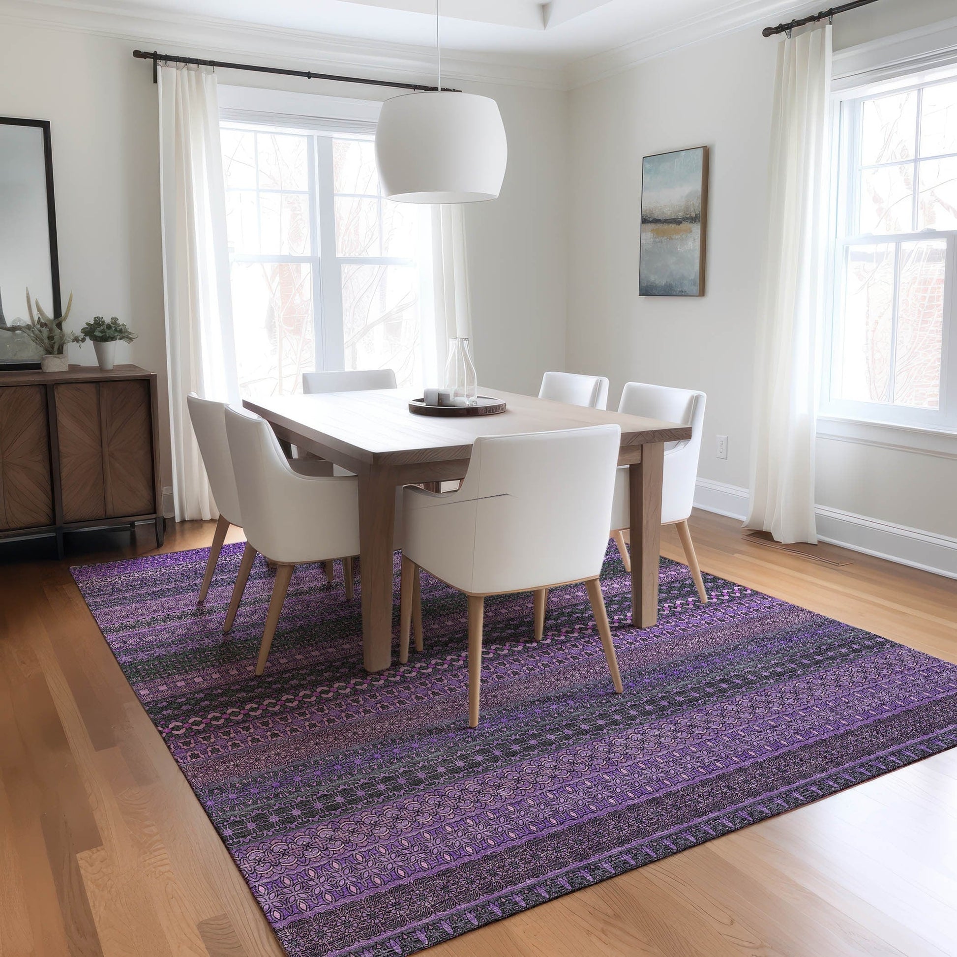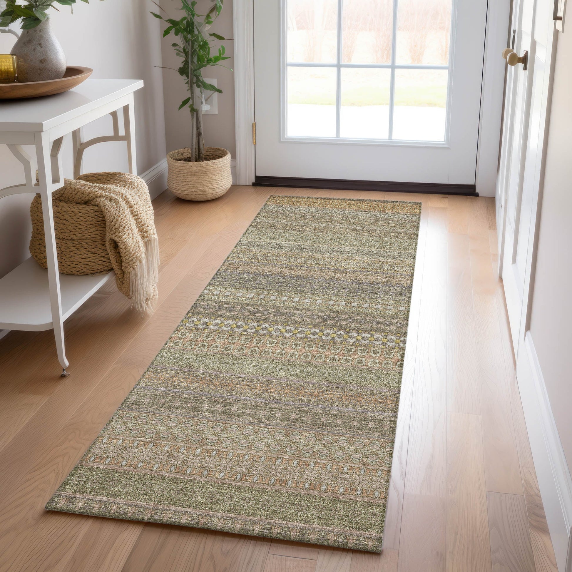 Machine Washable Indoor/ Outdoor Moroccan Stripes Chantille Rug