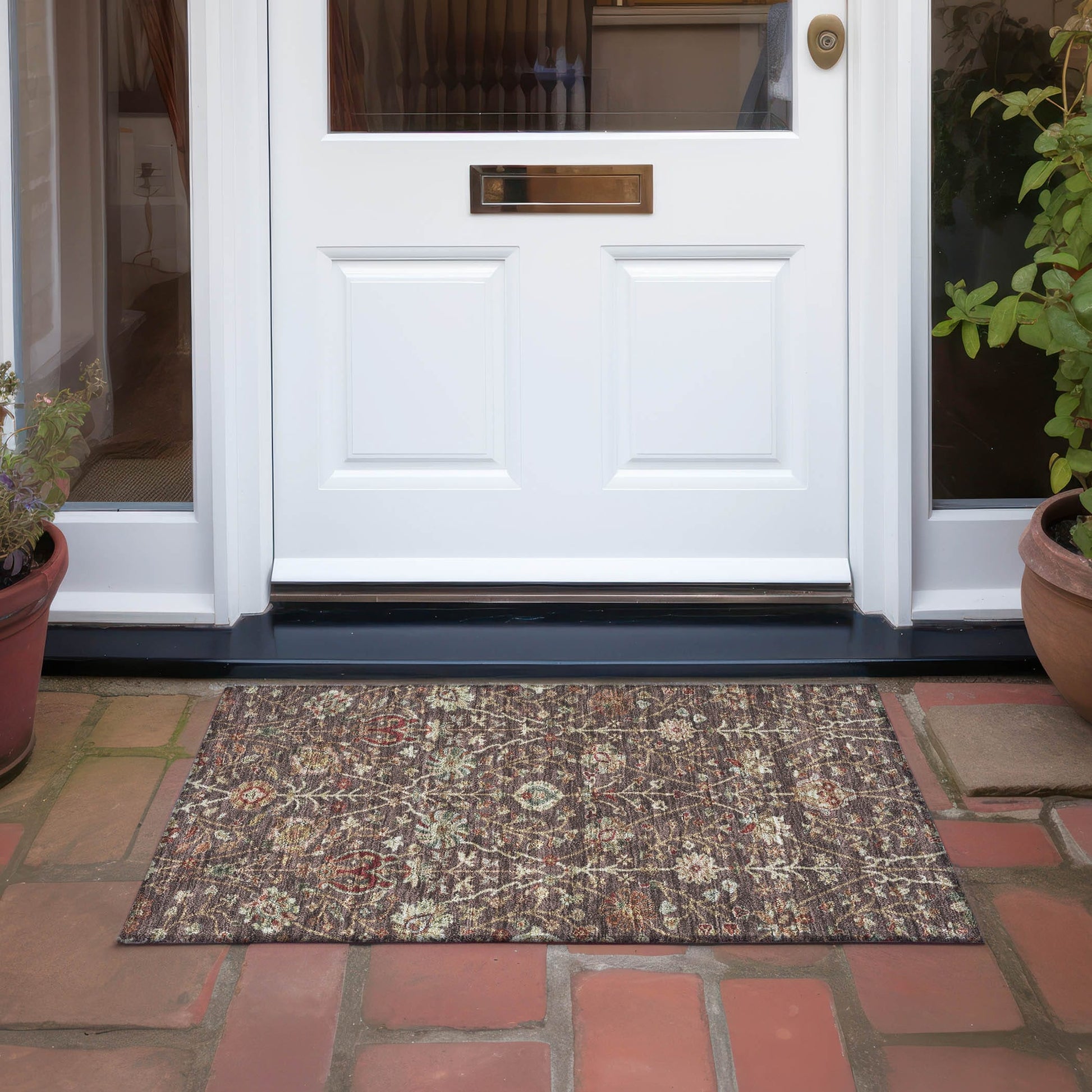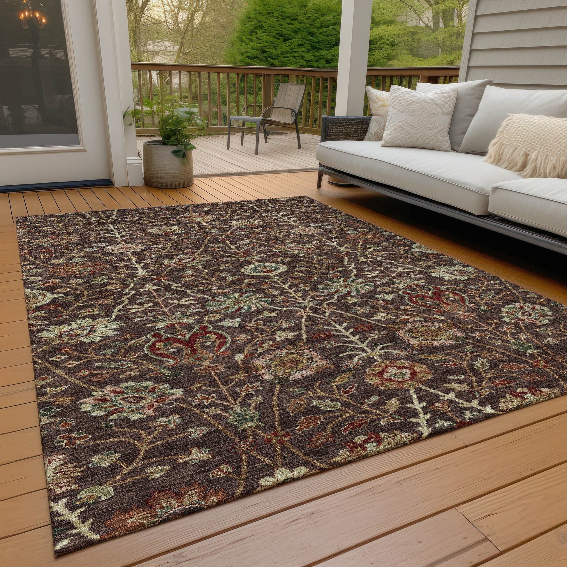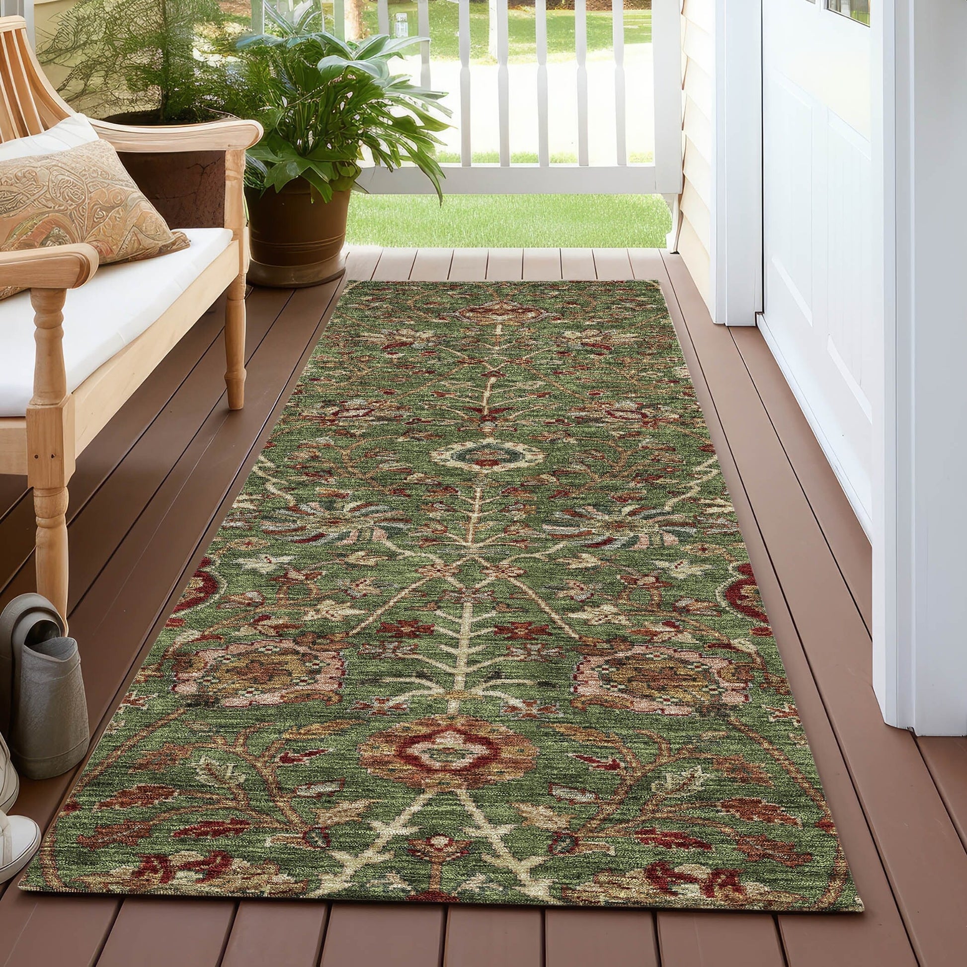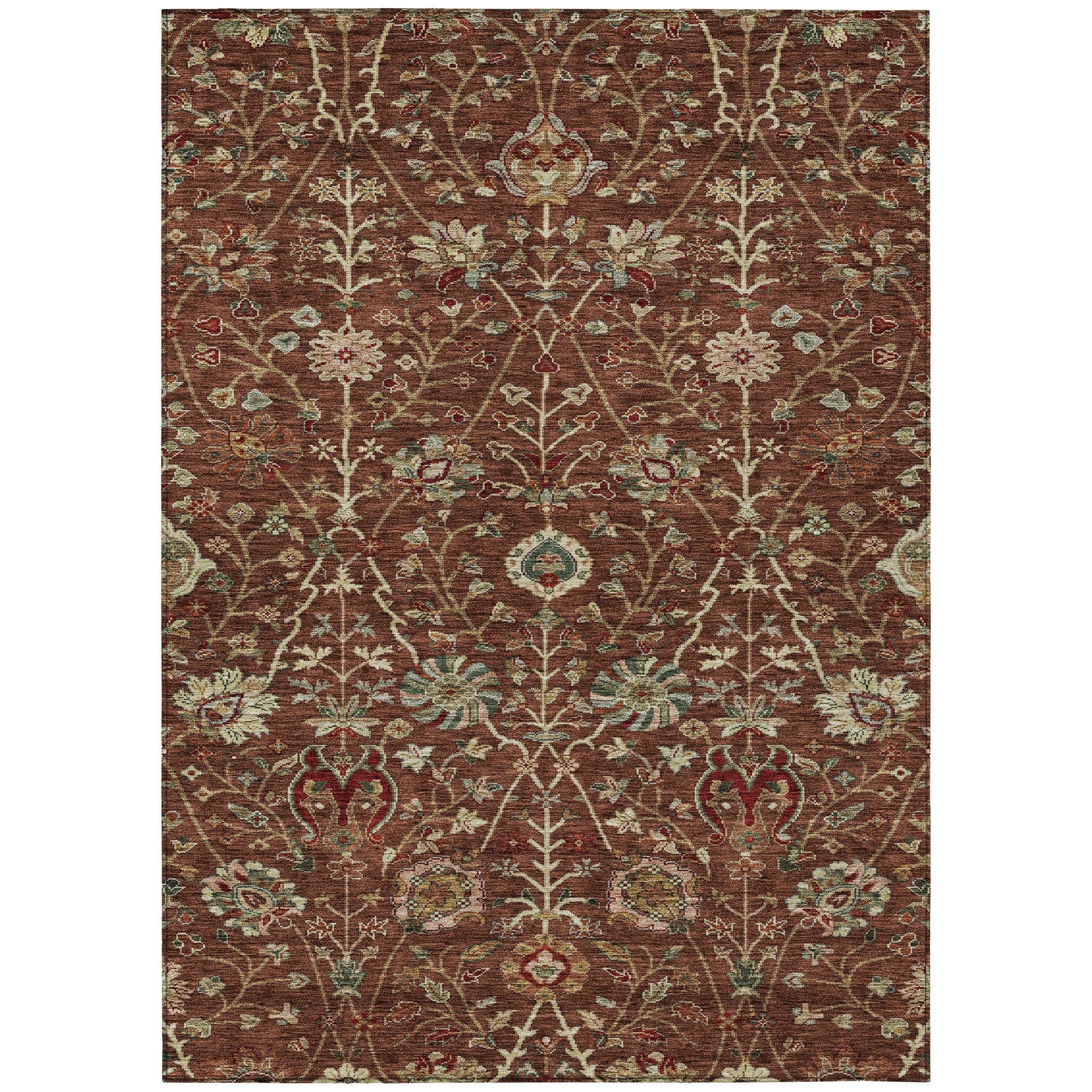 Machine Washable Indoor/ Outdoor Traditional Kashan Chantille Rug